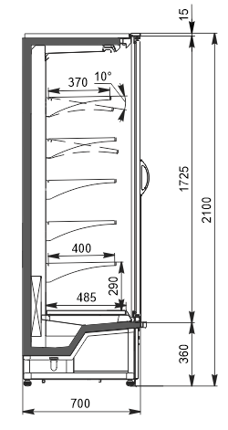 Indiana medium AV 070 D — це надійна вертикальна пристінна вітрина з автономною системою холодопостачання, призначена для демонстрації та зберігання охолоджених харчових продуктів. Завдяки компактній ширині 700 мм, вона ідеально підходить для магазинів будь-якого формату — від мінімаркетів до супермаркетів.