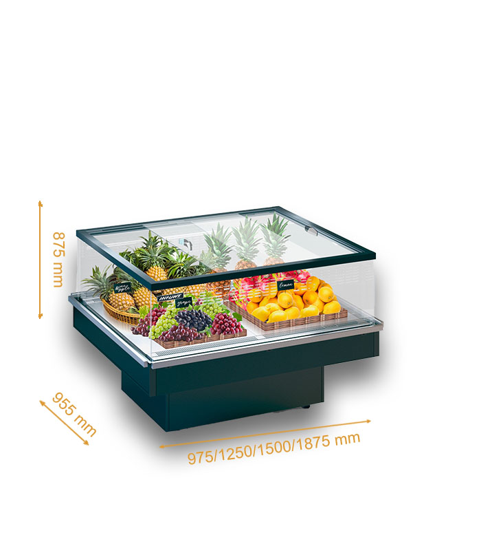 Virginia AC 100 D (option) — це гастрономічна вітрина кубічної форми з автономним холодопостачанням, яка призначена для зберігання та презентації ковбас, сирів, молочної продукції та фруктів. Завдяки вбудованому агрегату та динамічній системі охолодження, вітрина забезпечує стабільну температуру зберігання та ідеальні умови для самообслуговування у торговому залі.